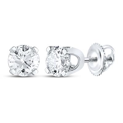 14k White Gold Round Diamond Solitaire Stud Earrings 1/2 CTTW (CERTIFIED)
